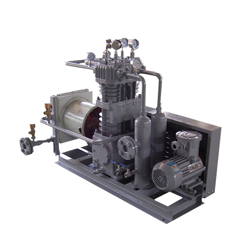 環(huán)氧乙烷壓縮機(jī)是我公司新型產(chǎn)品,它集壓縮機(jī)、氣液分離器、安全閥冷卻器、電動機(jī)等為一體,成一完整的機(jī)組。具有功能多、體積小、重量輕、功率小、運行平穩(wěn)可靠等特點,并有良好的安全性能。由于采用獨特的無油潤滑設(shè)計,氣缸內(nèi)無需用油潤滑,因而不會對介質(zhì)造成污染,使被輸送物質(zhì)保持純凈。本機(jī)設(shè)計成機(jī)組型式,許多管線上的附件都安裝在機(jī)組上,省卻了氣液分離器、穩(wěn)壓罐、安全閥、進(jìn)氣過濾器等,減小了機(jī)房的面積,減少了操作維護(hù)工作量,節(jié)省了投資。