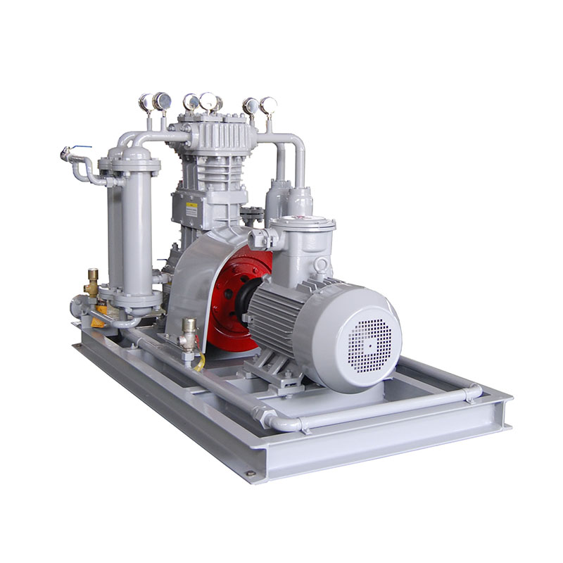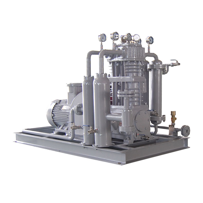 乙烯壓縮機壓縮機是我公司新型產(chǎn)品,它集壓縮機、氣液分離器、安全閥冷卻器、電動機等為一體,成一完整的機組。具有功能多、體積小、重量輕、功率小、運行平穩(wěn)可靠等特點,并有良好的安全性能。它為輸送氫氣,可為用戶最大限度地創(chuàng)造經(jīng)濟效益。由于采用獨特的無油潤滑設(shè)計,氣缸內(nèi)無需用油潤滑,因而不會對介質(zhì)造成污染,使被輸送物質(zhì)保持純凈。本機設(shè)計成機組型式,許多管線上的附件都安裝在機組上,省卻了氣液分離器、穩(wěn)壓罐、安全閥、進(jìn)氣過濾器等,減小了機房的面積,減少了操作維護(hù)工作量,節(jié)省了投資。
